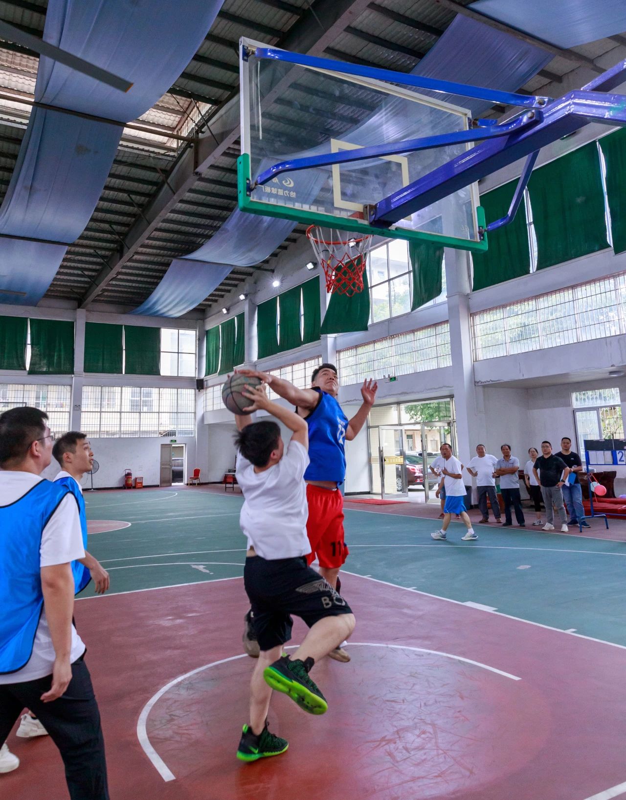 在眾人期待的籃球賽中,各組選手拼盡全力,每球必?fù)?,每分必?zhēng),幾乎在場(chǎng)上拼搏到了最后一刻!